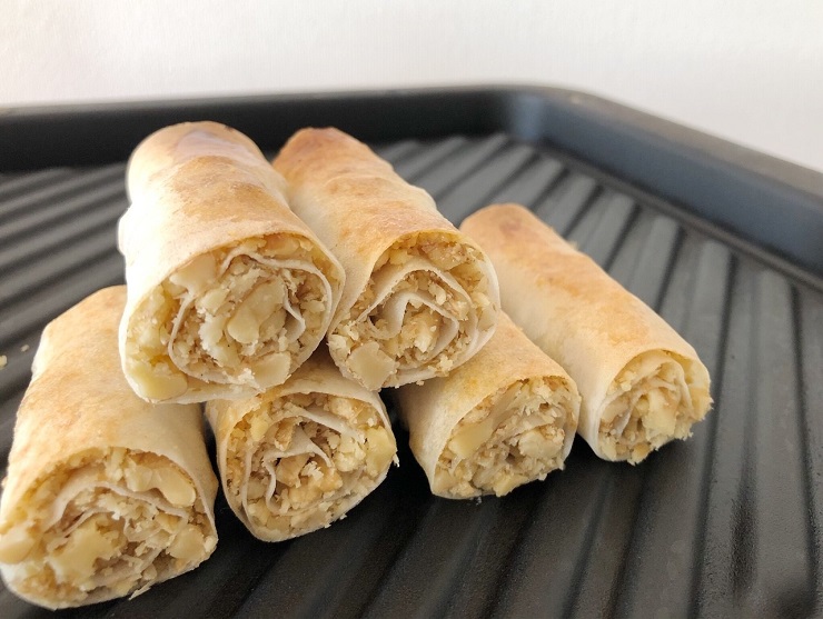 実際バクラヴァを作るとき、トルコではユフカという極薄の生地が使われますが、日本で作る場合はユフカを手に入れるのは難しいでしょう。その場合は、春巻きの皮で代用することができます。甘さ控えめの「クル・バクラヴァ」は少ない材料で、しかも30分ほどで作ることができます。