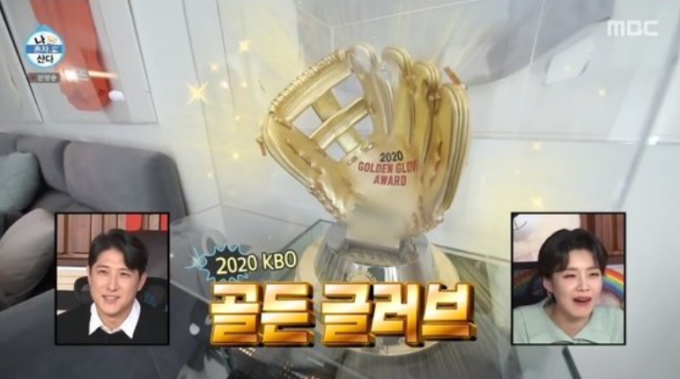황재균은 이사한 집부터 공개했다. 그는 "지난해 8월 이사했다"고 밝혔다. 특히 거실 중앙에는 영광의 골든 글러브가 자리 잡고 있었다. 황재균은 골든 글러브 수상에 대해 "이번에 처음 받았다. 너무 감사하다"고 소감을 전했다.