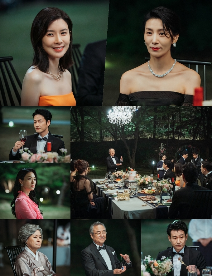 공개된 사진 속에는 재벌가답게 가족모임도 호화스러운 효원가 연회 모습이 담겨 있다. 눈이 부신 샹들리에 아래 효원그룹 한회장(정동환 분)을 필두로 식구들이 나란히 앉아 있고 분주히 오가는 메이드들을 통해 범상치 않은 규모의 파티임을 짐작케 한다.